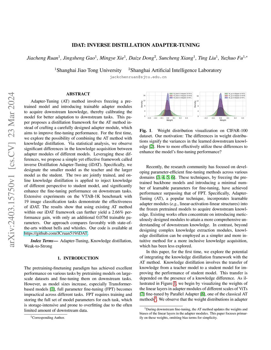 iDAT: inverse Distillation Adapter-Tuning