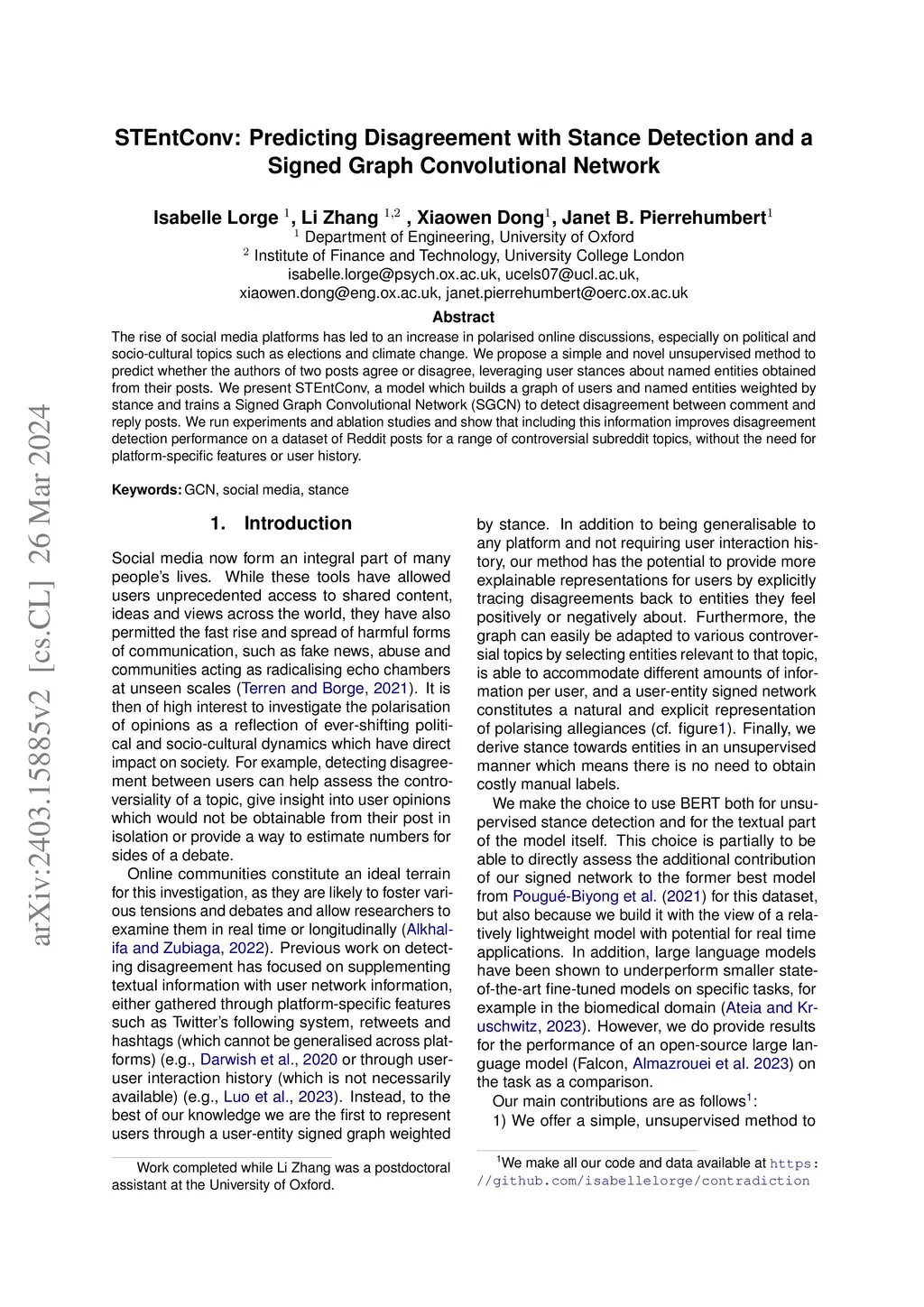 STEntConv: Predicting Disagreement with Stance Detection and a Signed