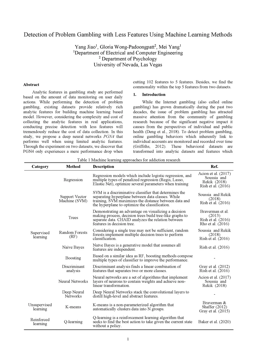 Analytic features in gambling study are performed based on the amount of data monitoring on user daily actions. While performing the detection of problem gambling, existing datasets provide relatively rich analytic features for building machine learning based model. However, considering the complexity and cost of collecting the analytic features in real applications, conducting precise detection with less features will tremendously reduce the cost of data collection. In this study, we propose a deep neural networks PGN4 that performs well when using limited analytic features. Through the experiment on two datasets, we discover that PGN4 only experiences a mere performance drop when cutting 102 features to 5 features. Besides, we find the commonality within the top 5 features from two datasets.