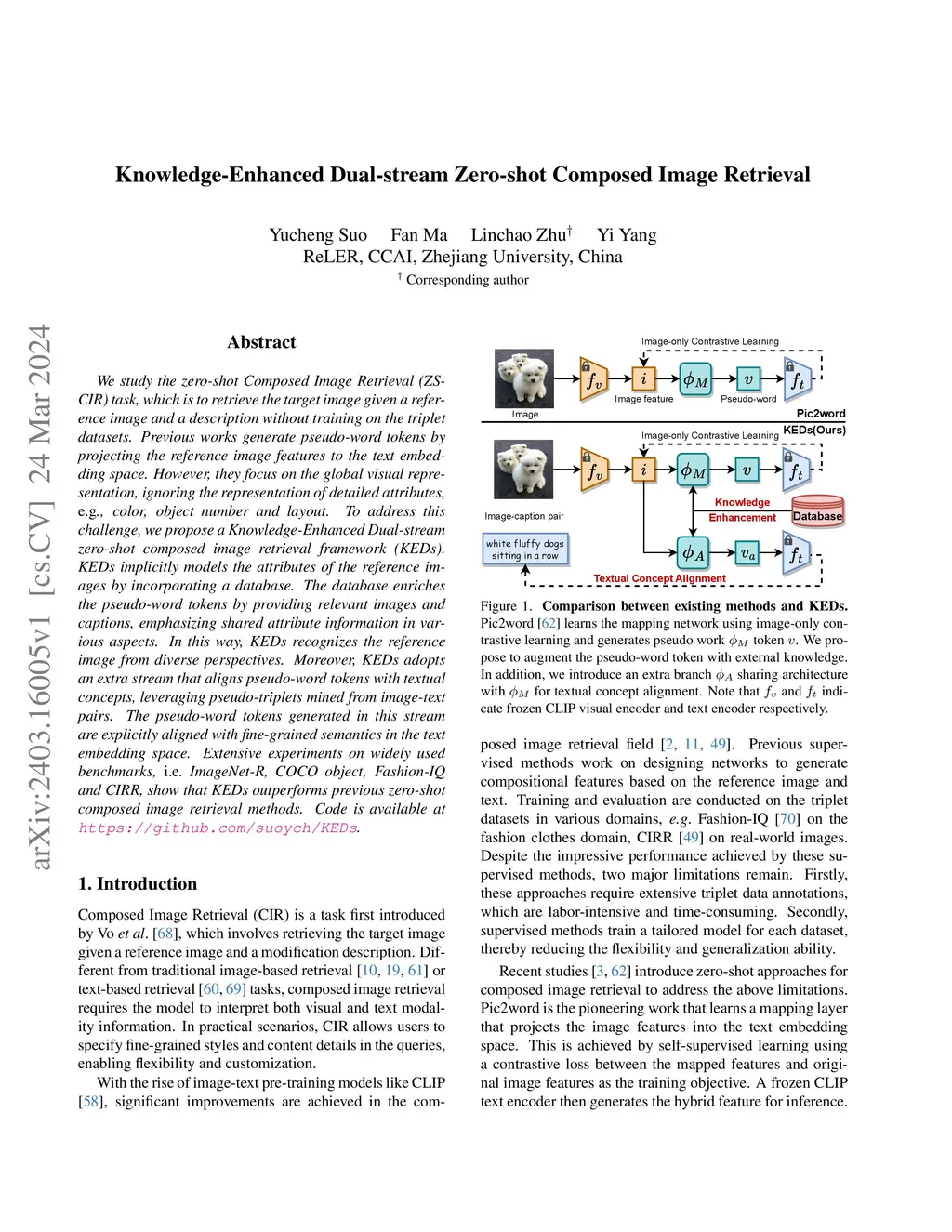 Knowledge-Enhanced Dual-stream Zero-shot Composed Image Retrieval