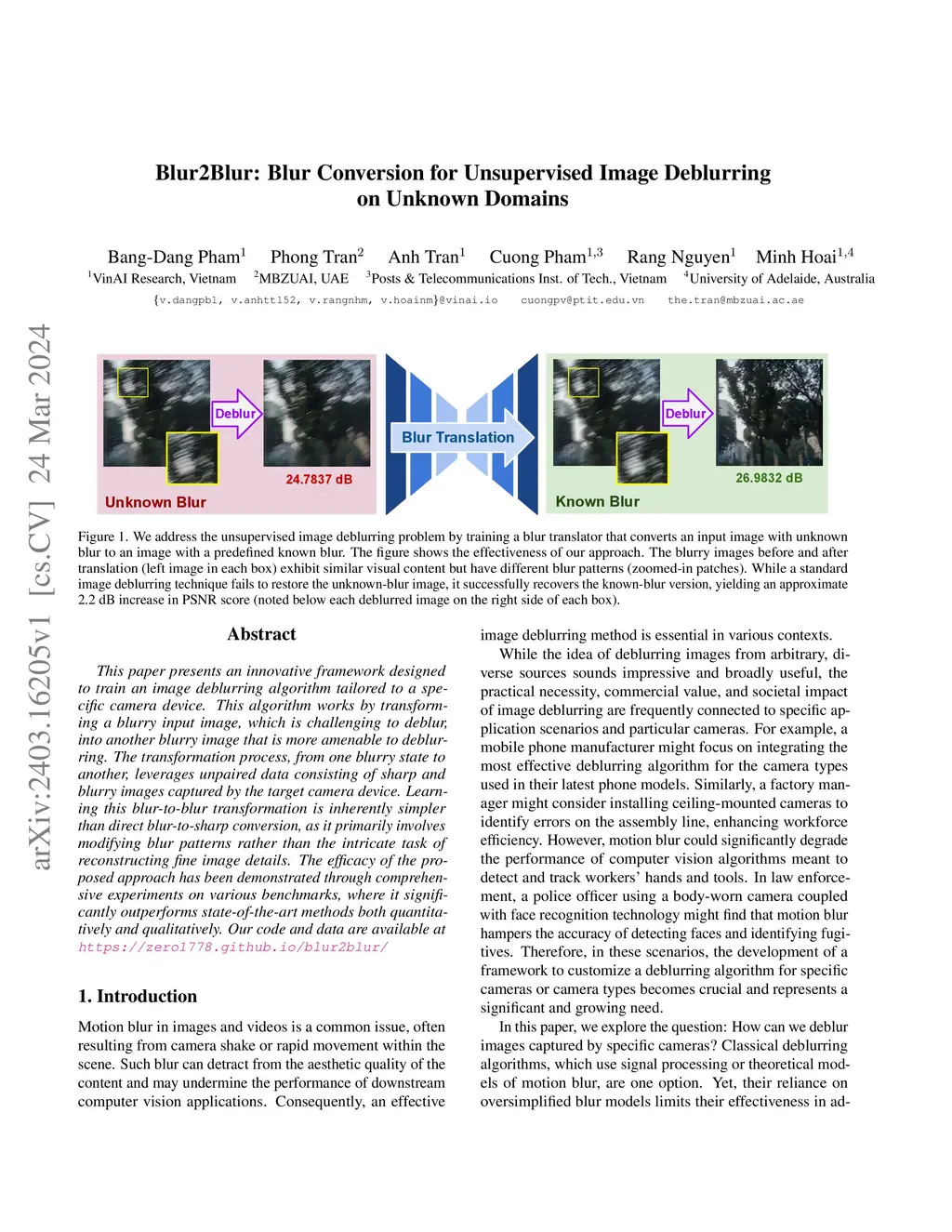 Blur2Blur: Blur Conversion for Unsupervised Image Deblurring on Unknown