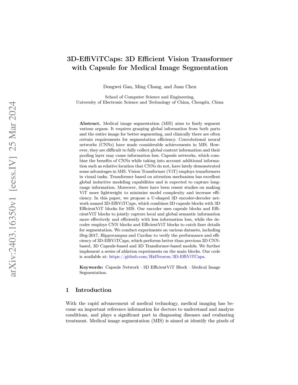 3D-EffiViTCaps: 3D Efficient Vision Transformer with Capsule for Medical