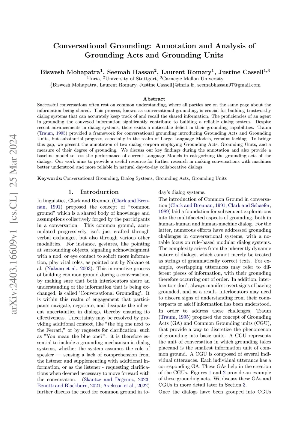 Successful conversations often rest on common understanding, where all parties are on the same page about the information being shared. This process, known as conversational grounding, is crucial for building trustworthy dialog systems that can accurately keep track of and recall the shared information. The proficiencies of an agent in grounding the conveyed information significantly contribute to building a reliable dialog system. Despite recent advancements in dialog systems, there exists a noticeable deficit in their grounding capabilities. Traum provided a framework for conversational grounding introducing Grounding Acts and Grounding Units, but substantial progress, especially in the realm of Large Language Models, remains lacking. To bridge this gap, we present the annotation of two dialog corpora employing Grounding Acts, Grounding Units, and a measure of their degree of grounding. We discuss our key findings during the annotation and also provide a baseline model to test the performance of current Language Models in categorizing the grounding acts of the dialogs. Our work aims to provide a useful resource for further research in making conversations with machines better understood and more reliable in natural day-to-day collaborative dialogs.