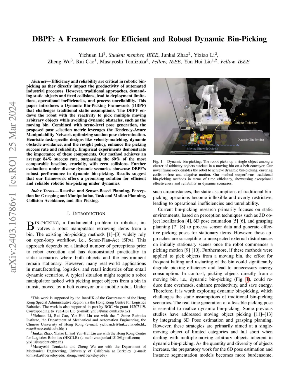 DBPF: A Framework for Efficient and Robust Dynamic Bin-Picking