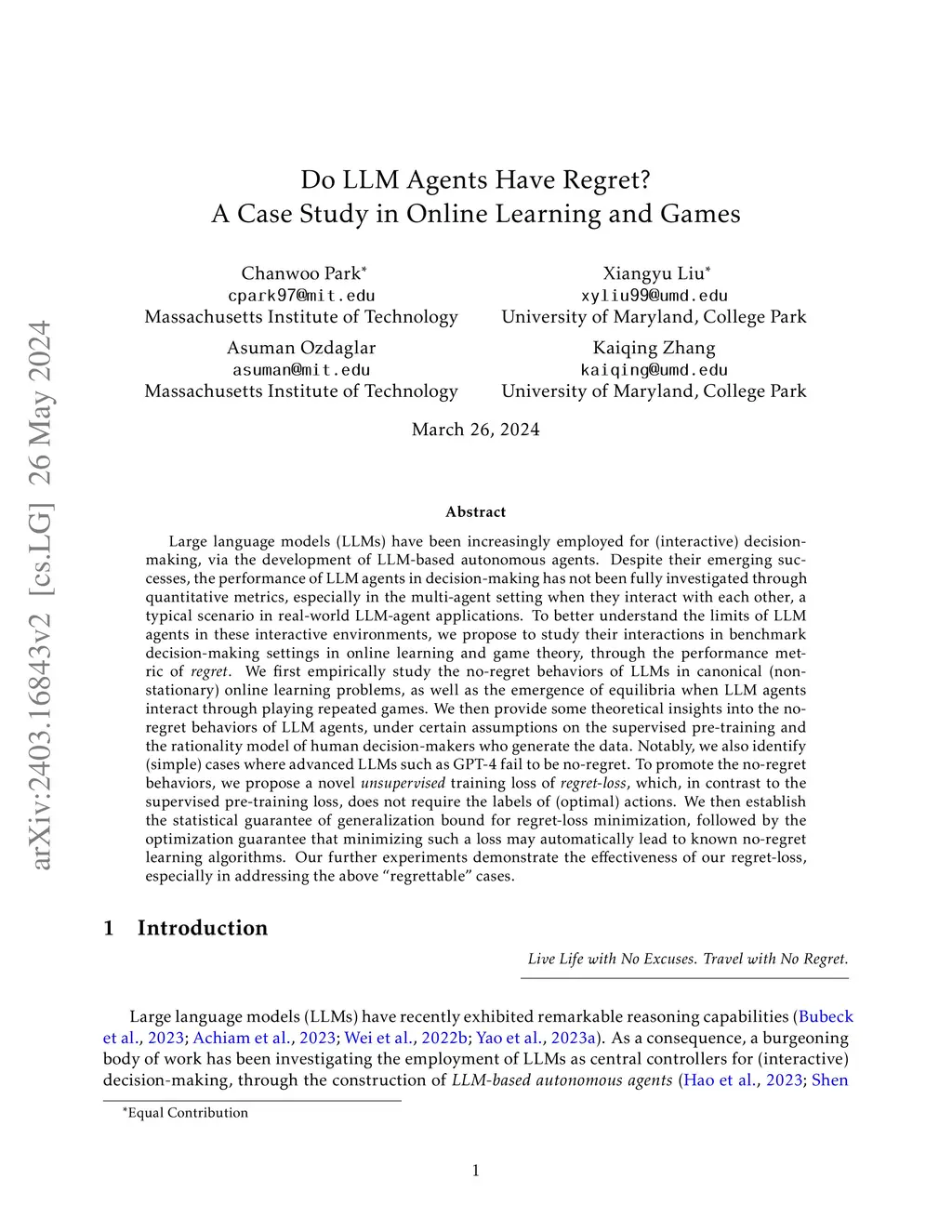 Do LLM Agents Have Regret? A Case Study in Online Learning and Games