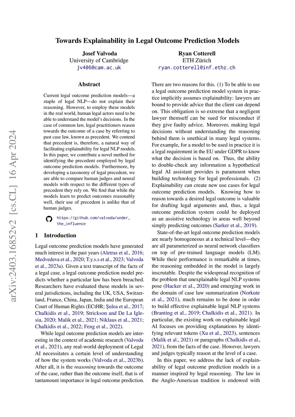 Current legal outcome prediction models - a staple of legal NLP - do not explain their reasoning. However, to employ these models in the real world, human legal actors need to be able to understand the model's decisions. In the case of common law, legal practitioners reason towards the outcome of a case by referring to past case law, known as precedent. We contend that precedent is, therefore, a natural way of facilitating explainability for legal NLP models. In this paper, we contribute a novel method for identifying the precedent employed by legal outcome prediction models. Furthermore, by developing a taxonomy of legal precedent, we are able to compare human judges and neural models with respect to the different types of precedent they rely on. We find that while the models learn to predict outcomes reasonably well, their use of precedent is unlike that of human judges.