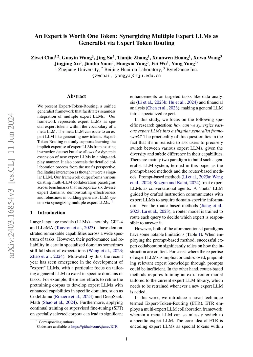 We present Expert-Token-Routing, a unified generalist framework that facilitates seamless integration of multiple expert LLMs. Our framework represents expert LLMs as special expert tokens within the vocabulary of a meta LLM. The meta LLM can route to an expert LLM like generating new tokens. Expert-Token-Routing not only supports learning the implicit expertise of expert LLMs from existing instruction dataset but also allows for dynamic extension of new expert LLMs in a plug-and-play manner. It also conceals the detailed collaboration process from the user's perspective, facilitating interaction as though it were a singular LLM. Our framework outperforms various existing multi-LLM collaboration paradigms across benchmarks that incorporate six diverse expert domains, demonstrating effectiveness and robustness in building generalist LLM system via synergizing multiple expert LLMs.
