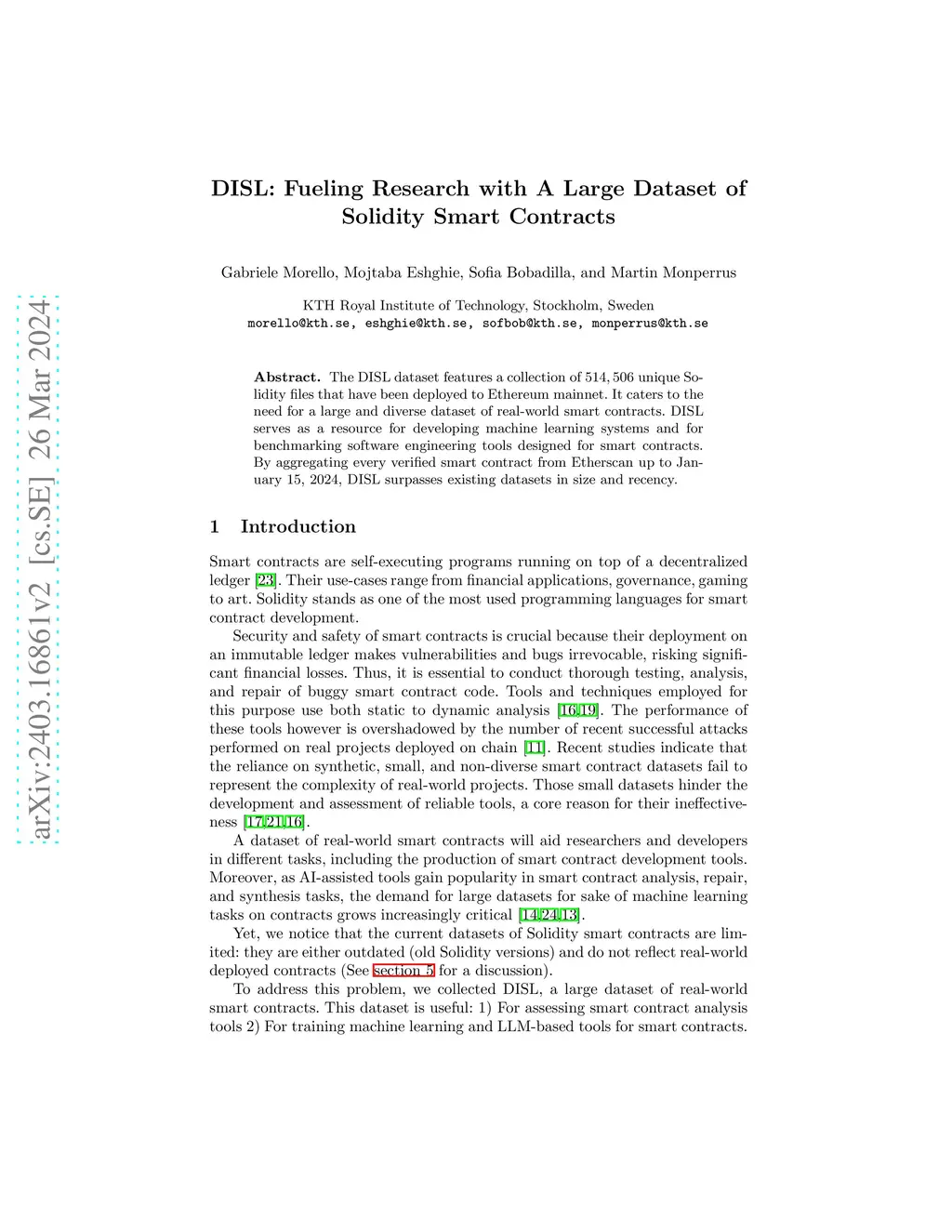 The DISL dataset features a collection of unique Solidity files that have been deployed to Ethereum mainnet. It caters to the need for a large and diverse dataset of real-world smart contracts. DISL serves as a resource for developing machine learning systems and for benchmarking software engineering tools designed for smart contracts. By aggregating every verified smart contract from Etherscan up to January 15, 2024, DISL surpasses existing datasets in size and recency.