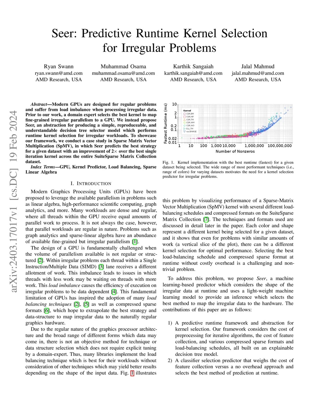 Seer: Predictive Runtime Kernel Selection for Irregular Problems