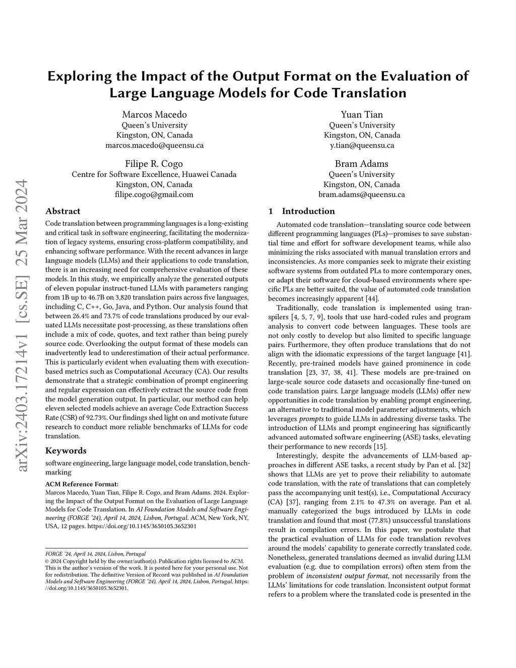 Code translation between programming languages (PLs) is a critical task in software engineering, facilitating the modernization of legacy systems, ensuring cross-platform compatibility, and enhancing software performance. Most existing studies instruct LLMs to perform code translation and evaluate their performance by either running the generated outputs through test suites or comparing them to reference outputs (ground truth). These outputs, however, may contain not only executable source code but also additional non-code elements, such as natural language explanations or formatting tokens. We refer to the combination of source code and non-code elements as the output format. It is crucial to understand and address variations in output format, as non-code elements can interfere with evaluation metrics, resulting in biased assessments of model performance and comparisons. We conduct an empirical analysis of the outputs from eleven instruct-tuned open-source LLMs, across five PLs: C, C++, Go, Java, and Python. The results show that between 26.4% and 73.7% of outputs produced by our evaluated LLMs necessitate post-processing. To mitigate output format bias, we propose a strategic combination of prompt engineering and regular expressions that effectively extracts source code from mixed-format outputs, enabling the eleven open-source models to achieve an average Code Extraction Success Rate (CSR) of 92.73%. Our empirical study confirms that output format bias affects widely used execution-based metrics, i.e., Computational Accuracy (CA), and text-based metrics, i.e., BLEU, CodeBLEU and CrystalBLEU. Additionally, we test five closed-source LLMs and observe that they also generate varying distributions of output formats, which could lead to output format biases. Our results highlight the need to mitigate the output format bias to enable reliable evaluations in LLMs for code translation.