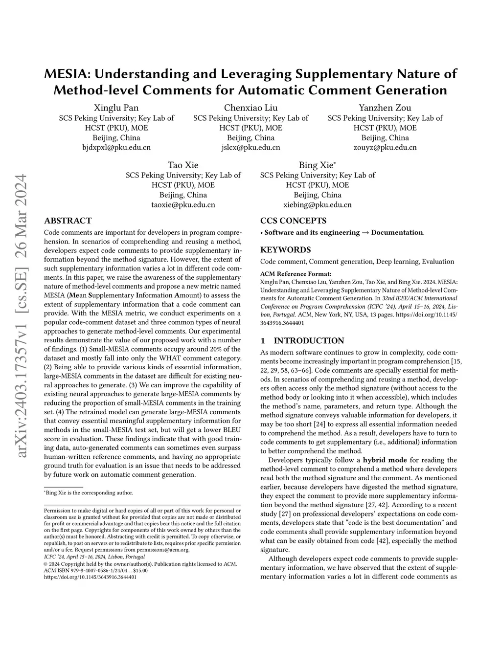 MESIA: Understanding and Leveraging Supplementary Nature of Method-level