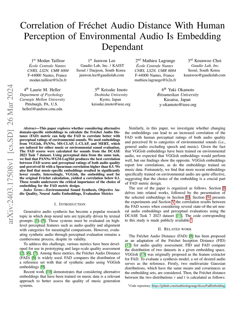 This paper explores whether considering alternative domain-specific embeddings to calculate the Fr\échet Audio Distance (FAD) metric can help the FAD to correlate better with perceptual ratings of environmental sounds. We used embeddings from VGGish, PANNs, MS-CLAP, L-CLAP, and MERT, which are tailored for either music or environmental sound evaluation. The FAD scores were calculated for sounds from the DCASE 2023 Task 7 dataset. Using perceptual data from the same task, we find that PANNs-WGM-LogMel produces the best correlation between FAD scores and perceptual ratings of both audio quality and perceived fit with a Spearman correlation higher than 0.5. We also find that music-specific embeddings resulted in significantly lower results. Interestingly, VGGish, the embedding used for the original Fr\échet calculation, yielded a correlation below 0.1. These results underscore the critical importance of the choice of embedding for the FAD metric design.