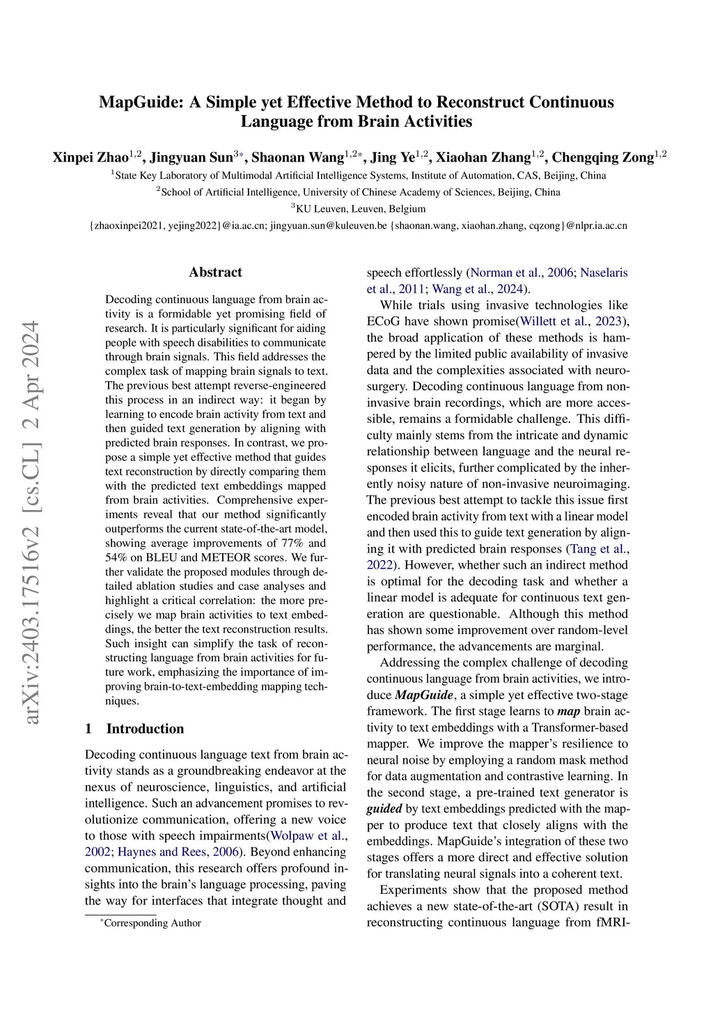 MapGuide: A Simple yet Effective Method to Reconstruct Continuous Language from Brain Activities