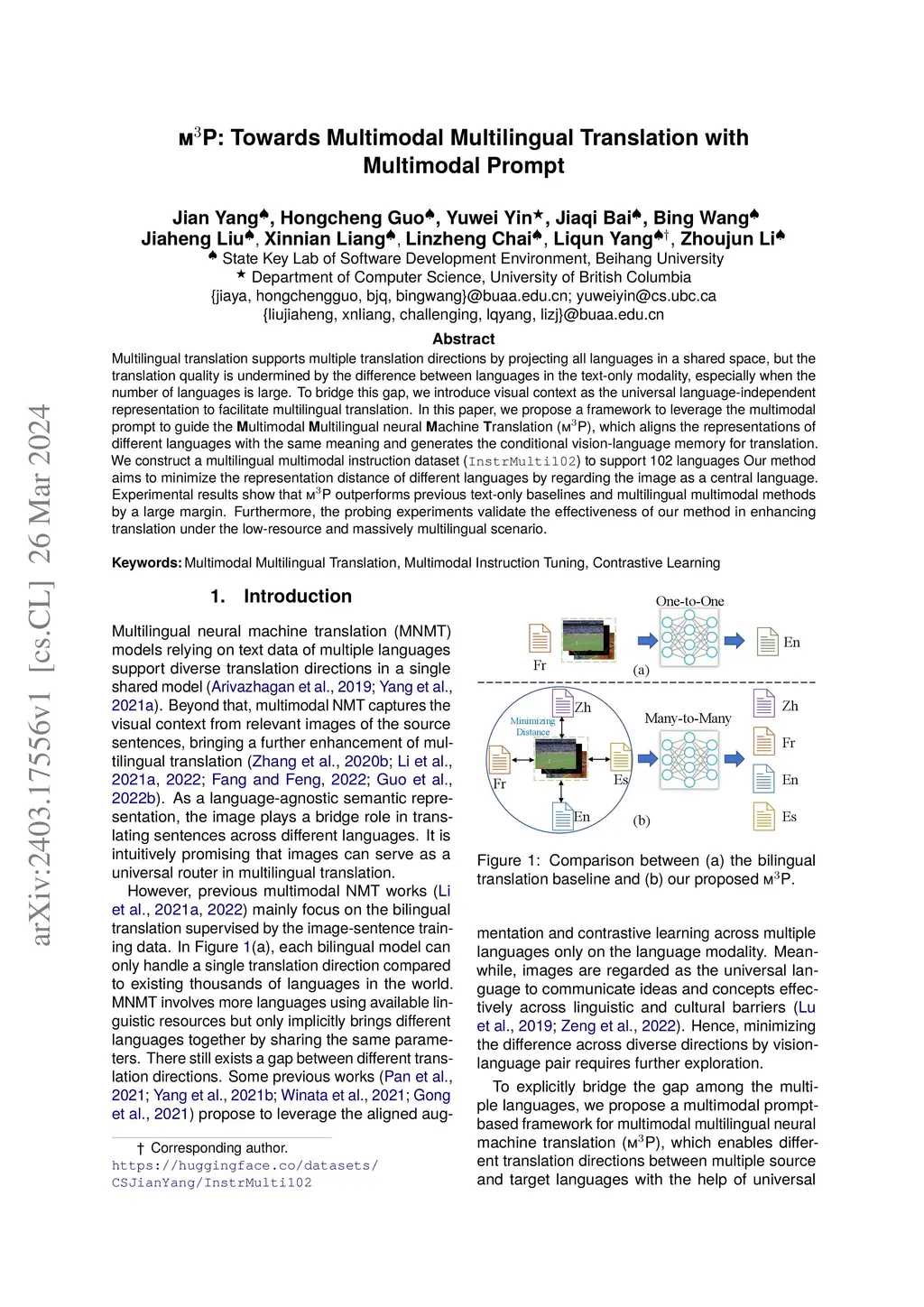 m3P: Towards Multimodal Multilingual Translation with Multimodal Prompt