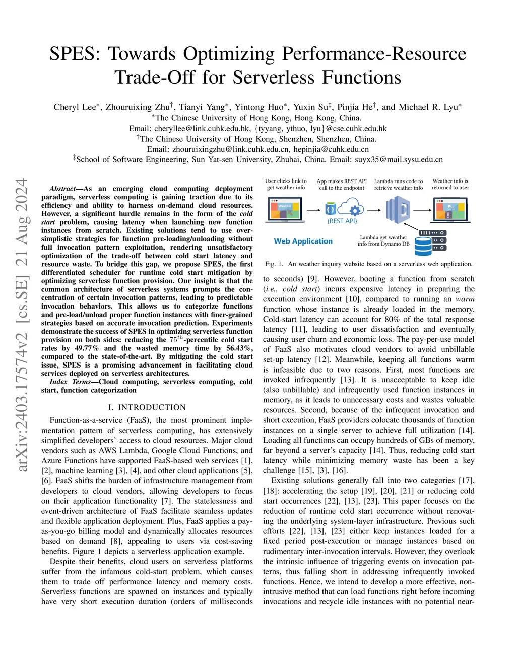 SPES: Towards Optimizing Performance-Resource Trade-Off for Serverless