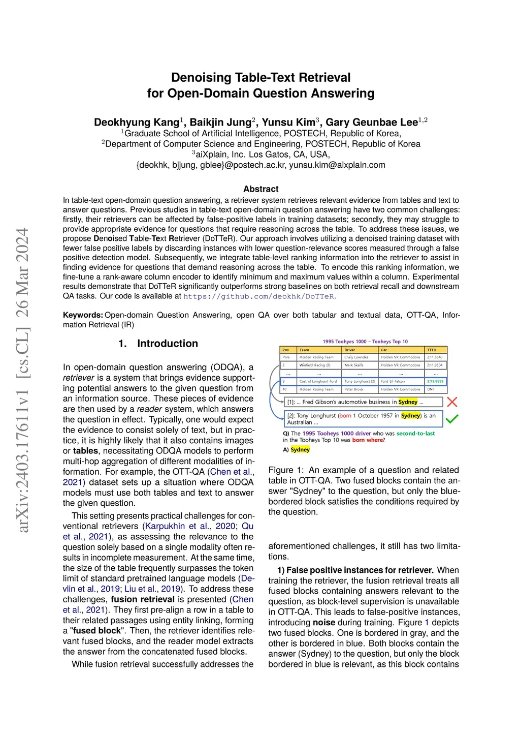 Denoising Table-Text Retrieval for Open-Domain Question Answering