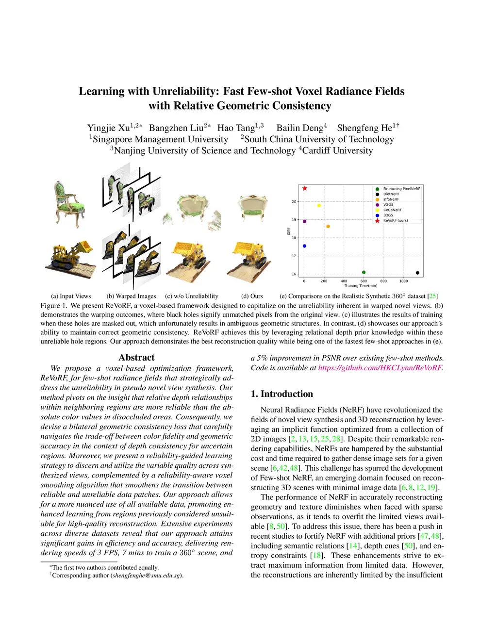 Learning with Unreliability: Fast Few-shot Voxel Radiance Fields with