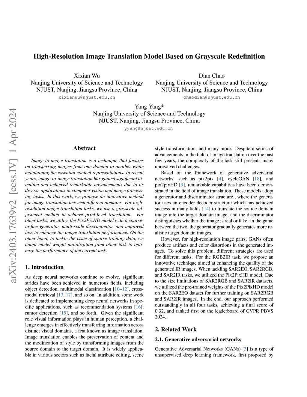 High-Resolution Image Translation Model Based on Grayscale Redefinition