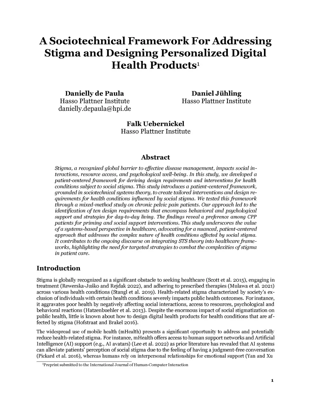 Stigma, a recognized global barrier to effective disease management, impacts social interactions, resource access, and psychological well-being. In this study, we developed a patient-centered framework for deriving design requirements and interventions for health conditions subject to social stigma. This study introduces a patient-centered framework, grounded in sociotechnical systems theory, to create tailored interventions and design requirements for health conditions influenced by social stigma. We tested this framework through a mixed-method study on chronic pelvic pain patients. Our approach led to the identification of ten design requirements that encompass behavioral and psychological support and strategies for day-to-day living. The findings reveal a preference among CPP patients for priming and social support interventions. This study underscores the value of a systems-based perspective in healthcare, advocating for a nuanced, patient-centered approach that addresses the complex nature of health conditions affected by social stigma. It contributes to the ongoing discourse on integrating STS theory into healthcare frameworks, highlighting the need for targeted strategies to combat the complexities of stigma in patient care.