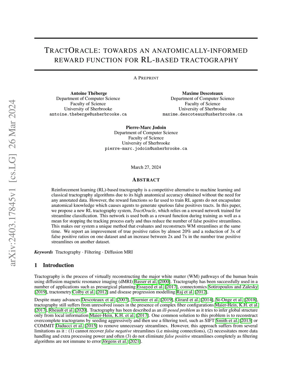 Reinforcement learning (RL)-based tractography is a competitive alternative to machine learning and classical tractography algorithms due to its high anatomical accuracy obtained without the need for any annotated data. However, the reward functions so far used to train RL agents do not encapsulate anatomical knowledge which causes agents to generate spurious false positives tracts. In this paper, we propose a new RL tractography system, TractOracle, which relies on a reward network trained for streamline classification. This network is used both as a reward function during training as well as a mean for stopping the tracking process early and thus reduce the number of false positive streamlines. This makes our system a unique method that evaluates and reconstructs WM streamlines at the same time. We report an improvement of true positive ratios by almost 20\% and a reduction of 3x of false positive ratios on one dataset and an increase between 2x and 7x in the number true positive streamlines on another dataset.