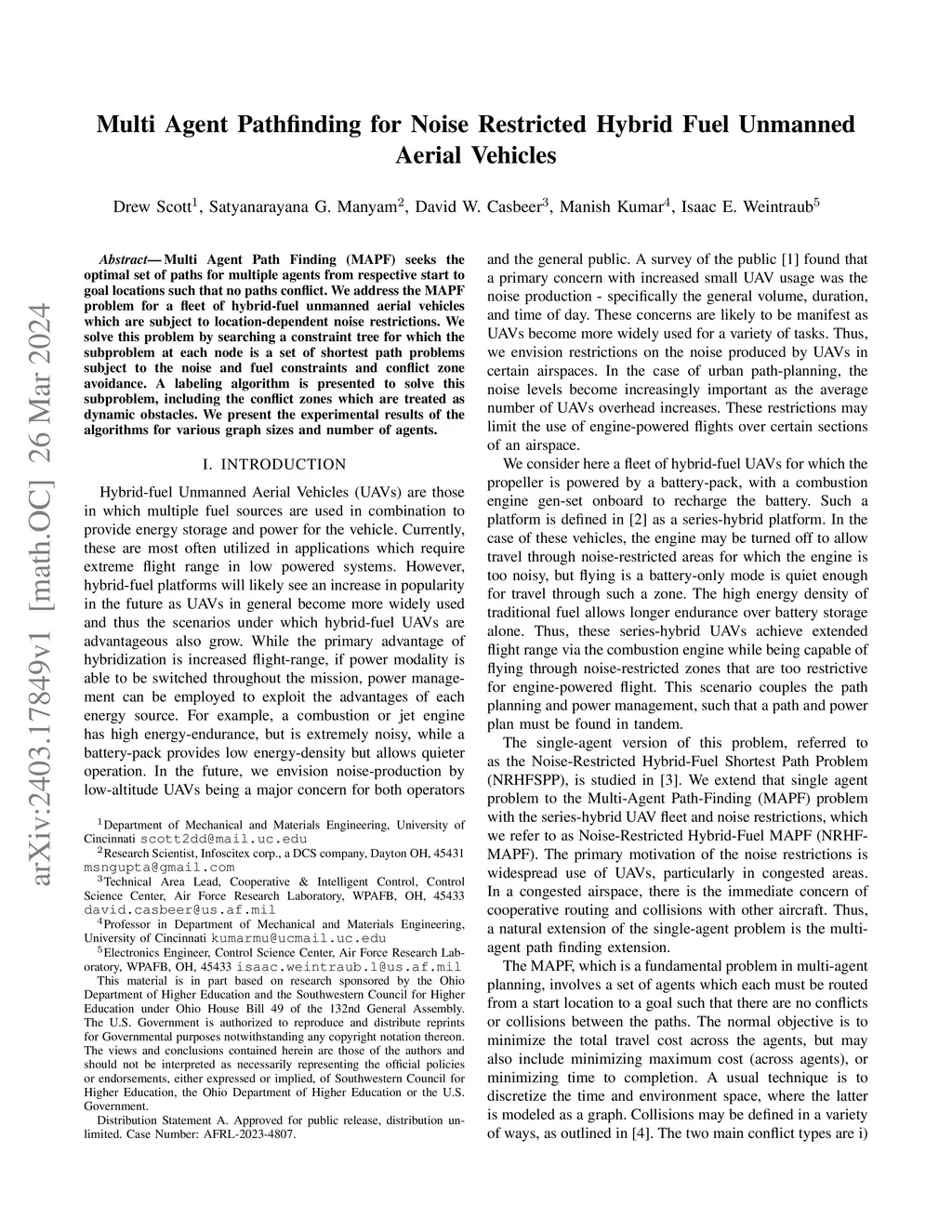 Multi Agent Pathfinding for Noise Restricted Hybrid Fuel Unmanned Aerial