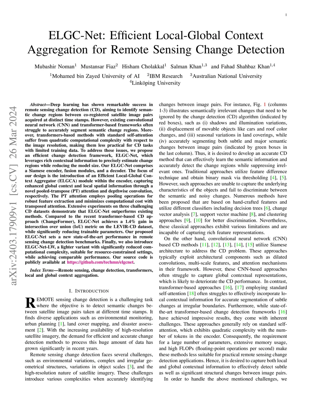 ELGC-Net: Efficient Local-Global Context Aggregation for Remote Sensing