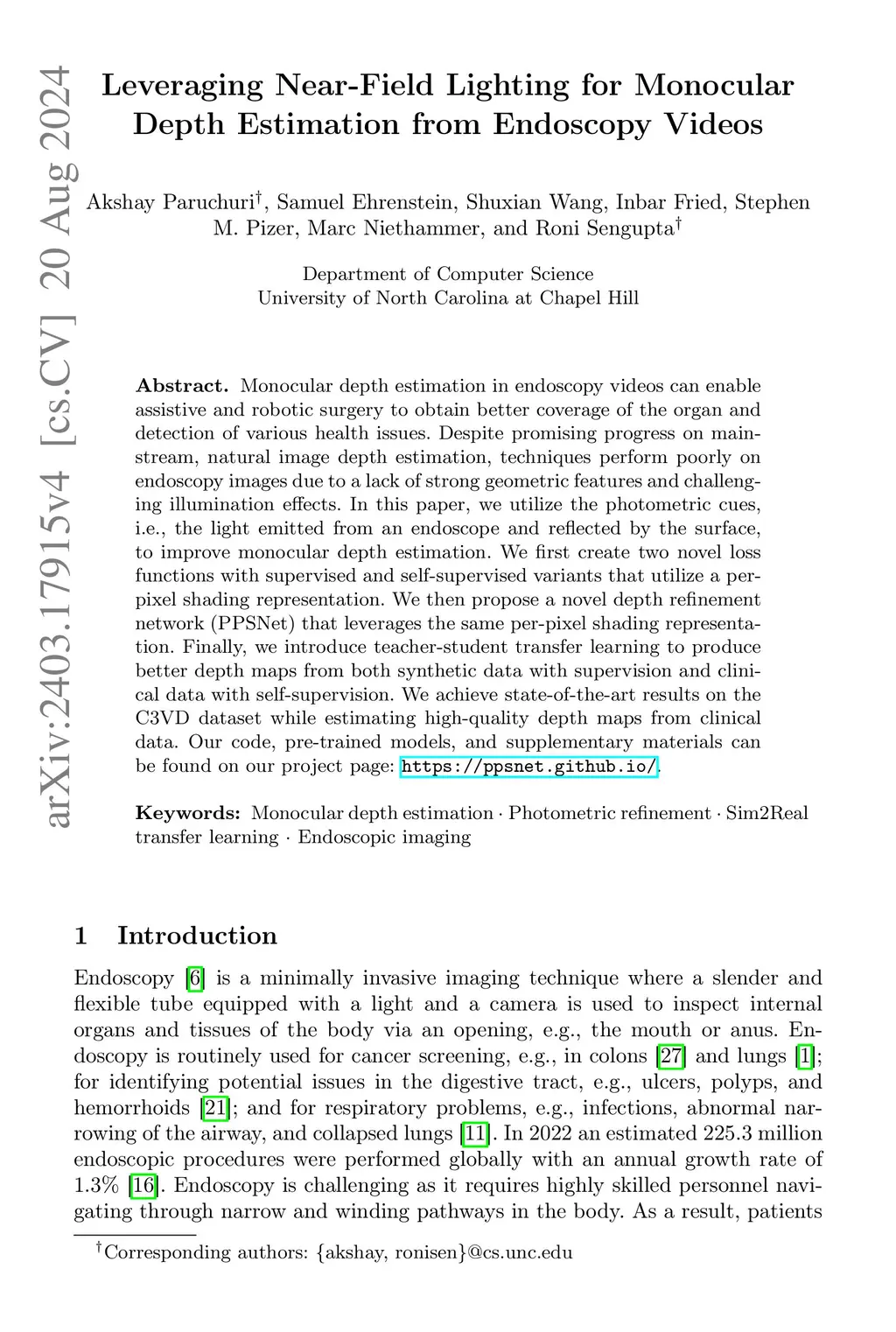 Monocular depth estimation in endoscopy videos can enable assistive and robotic surgery to obtain better coverage of the organ and detection of various health issues. Despite promising progress on mainstream, natural image depth estimation, techniques perform poorly on endoscopy images due to a lack of strong geometric features and challenging illumination effects. In this paper, we utilize the photometric cues, i.e., the light emitted from an endoscope and reflected by the surface, to improve monocular depth estimation. We first create two novel loss functions with supervised and self-supervised variants that utilize a per-pixel shading representation. We then propose a novel depth refinement network (PPSNet) that leverages the same per-pixel shading representation. Finally, we introduce teacher-student transfer learning to produce better depth maps from both synthetic data with supervision and clinical data with self-supervision. We achieve state-of-the-art results on the C3VD dataset while estimating high-quality depth maps from clinical data. Our code, pre-trained models, and supplementary materials can be found on our project page: https://ppsnet.github.io/
