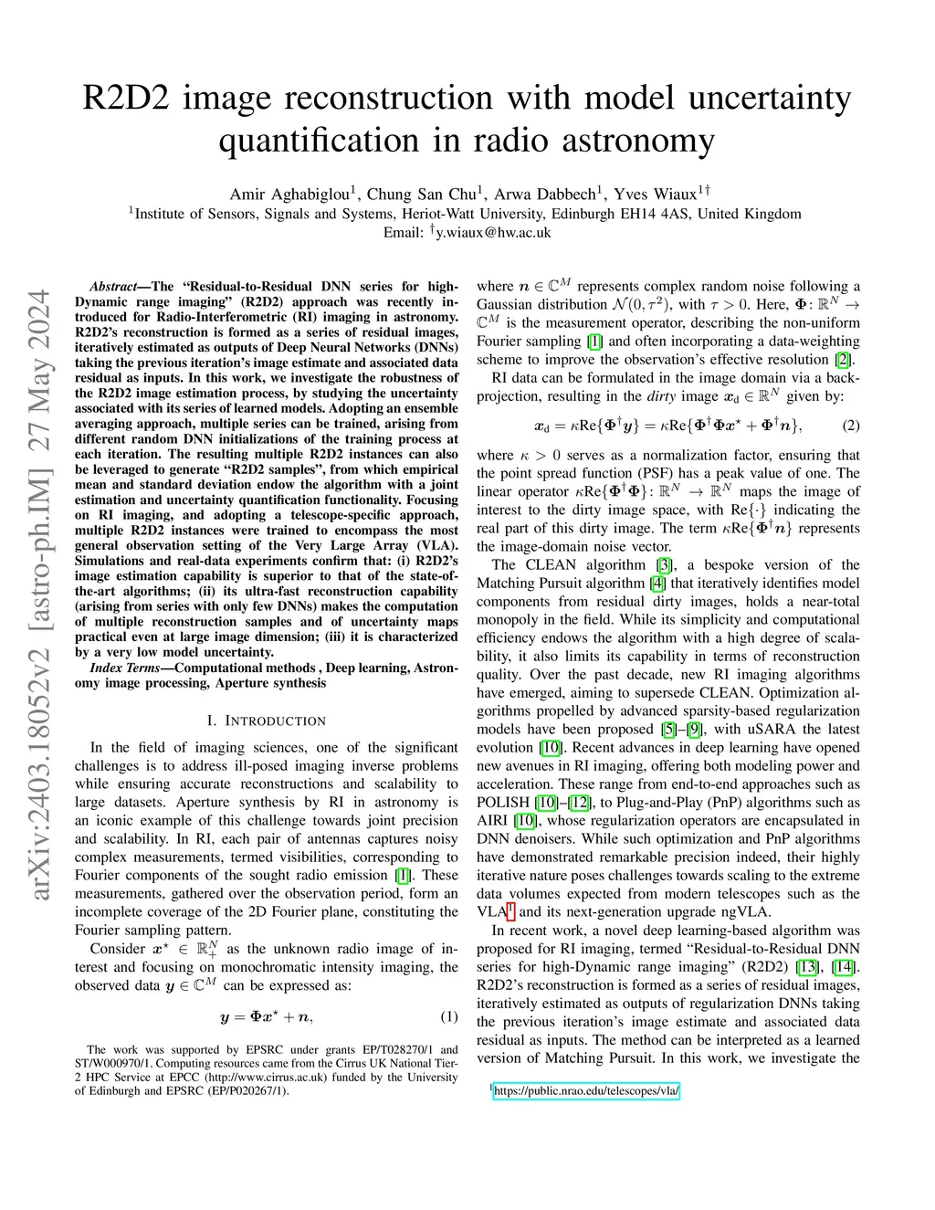 R2D2 image reconstruction with model uncertainty quantification in radio