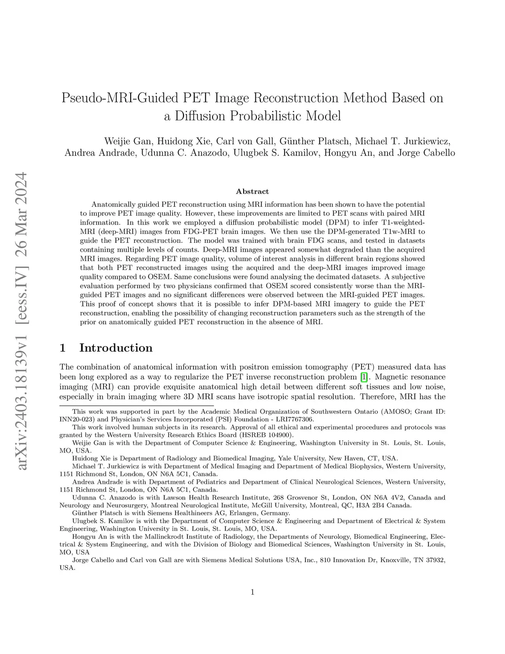 Pseudo-MRI-Guided PET Image Reconstruction Method Based on a Diffusion