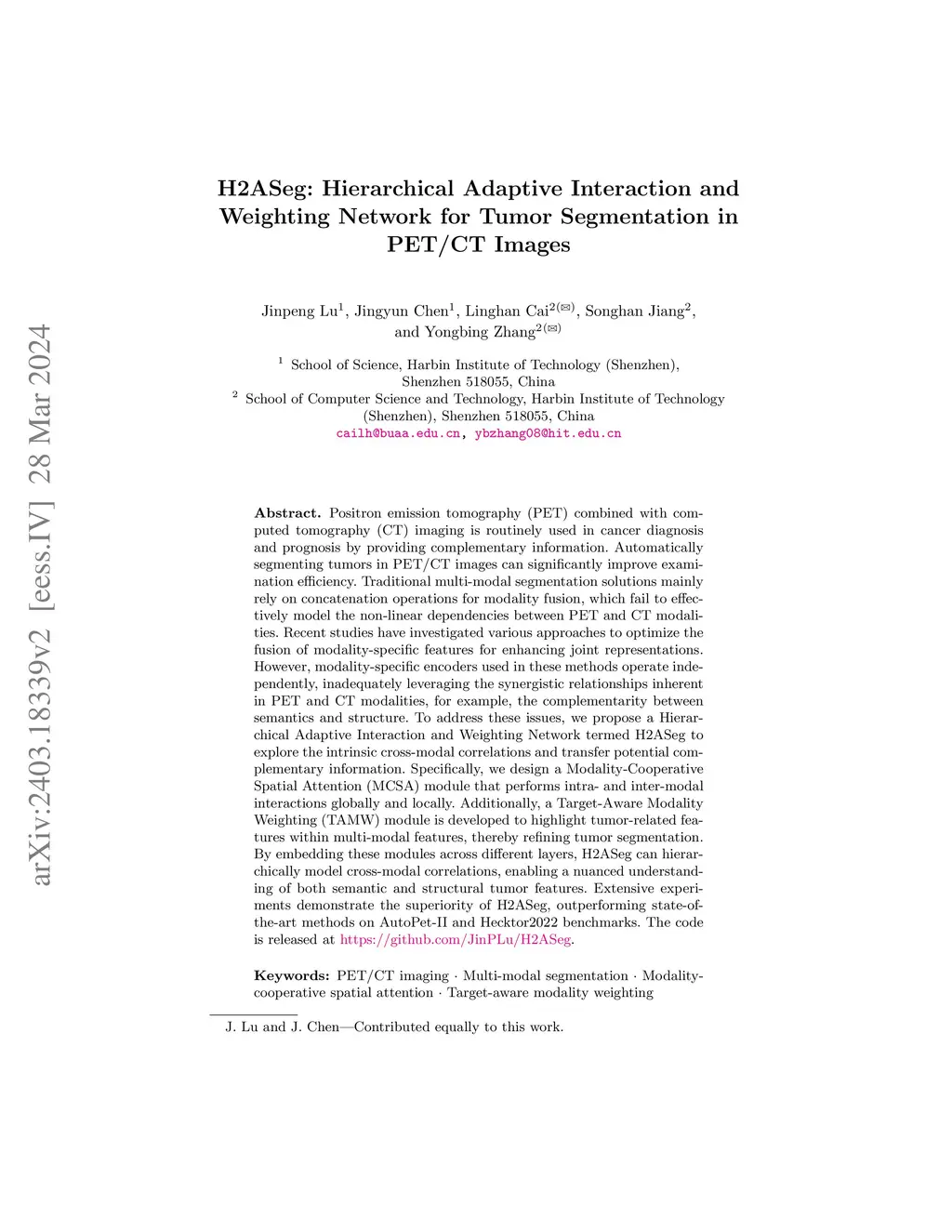 H2ASeg: Hierarchical Adaptive Interaction and Weighting Network for