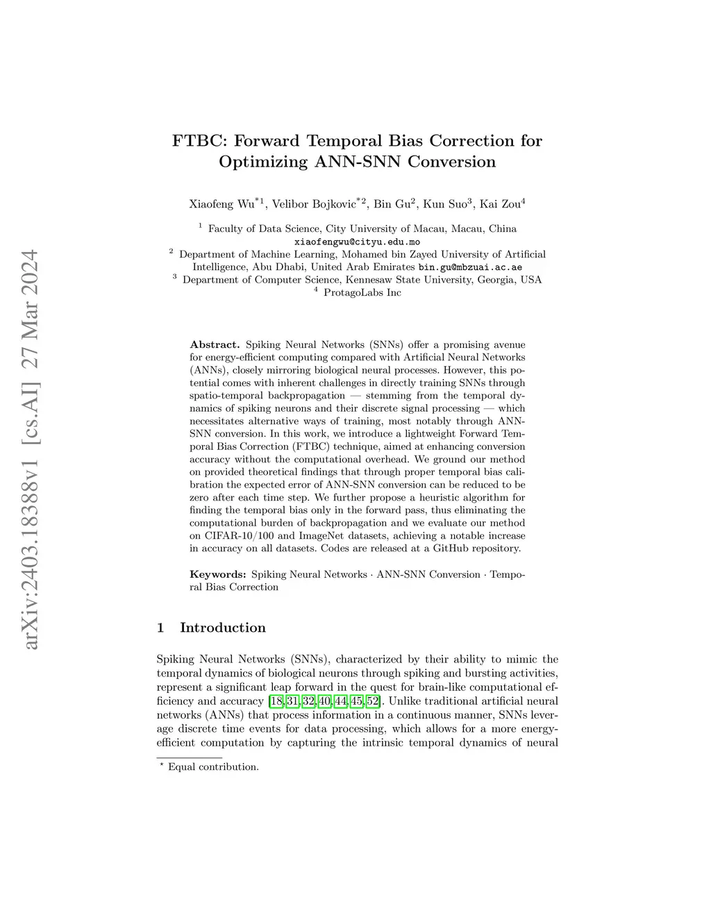FTBC: Forward Temporal Bias Correction for Optimizing ANN-SNN Conversion