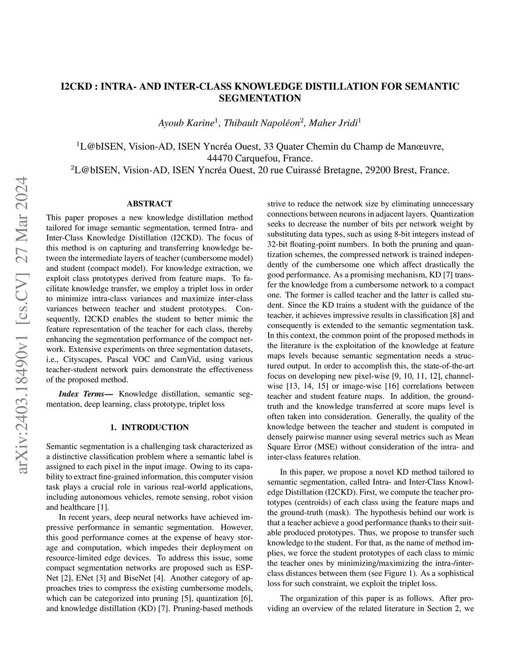 I2CKD : Intra- and Inter-Class Knowledge Distillation for Semantic Segmentation