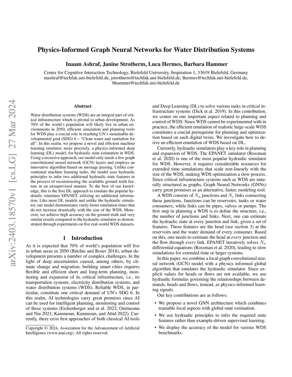 Physics-Informed Graph Neural Networks for Water Distribution Systems