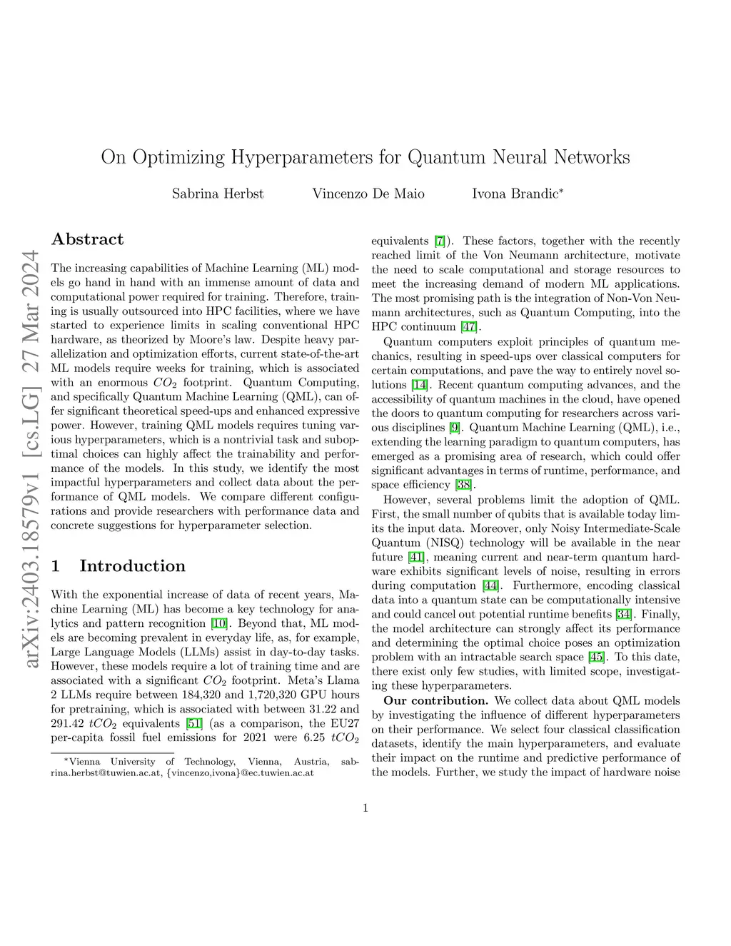 The increasing capabilities of Machine Learning (ML) models go hand in hand with an immense amount of data and computational power required for training. Therefore, training is usually outsourced into HPC facilities, where we have started to experience limits in scaling conventional HPC hardware, as theorized by Moore's law. Despite heavy parallelization and optimization efforts, current state-of-the-art ML models require weeks for training, which is associated with an enormous footprint. Quantum Computing, and specifically Quantum Machine Learning (QML), can offer significant theoretical speed-ups and enhanced expressive power. However, training QML models requires tuning various hyperparameters, which is a nontrivial task and suboptimal choices can highly affect the trainability and performance of the models. In this study, we identify the most impactful hyperparameters and collect data about the performance of QML models. We compare different configurations and provide researchers with performance data and concrete suggestions for hyperparameter selection.