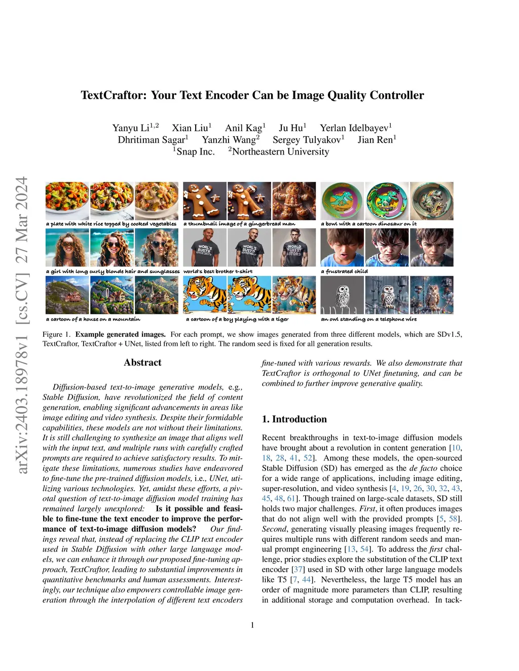 Diffusion-based text-to-image generative models, e.g., Stable Diffusion, have revolutionized the field of content generation, enabling significant advancements in areas like image editing and video synthesis. Despite their formidable capabilities, these models are not without their limitations. It is still challenging to synthesize an image that aligns well with the input text, and multiple runs with carefully crafted prompts are required to achieve satisfactory results. To mitigate these limitations, numerous studies have endeavored to fine-tune the pre-trained diffusion models, i.e., UNet, utilizing various technologies. Yet, amidst these efforts, a pivotal question of text-to-image diffusion model training has remained largely unexplored: Is it possible and feasible to fine-tune the text encoder to improve the performance of text-to-image diffusion models? Our findings reveal that, instead of replacing the CLIP text encoder used in Stable Diffusion with other large language models, we can enhance it through our proposed fine-tuning approach, TextCraftor, leading to substantial improvements in quantitative benchmarks and human assessments. Interestingly, our technique also empowers controllable image generation through the interpolation of different text encoders fine-tuned with various rewards. We also demonstrate that TextCraftor is orthogonal to UNet finetuning, and can be combined to further improve generative quality.