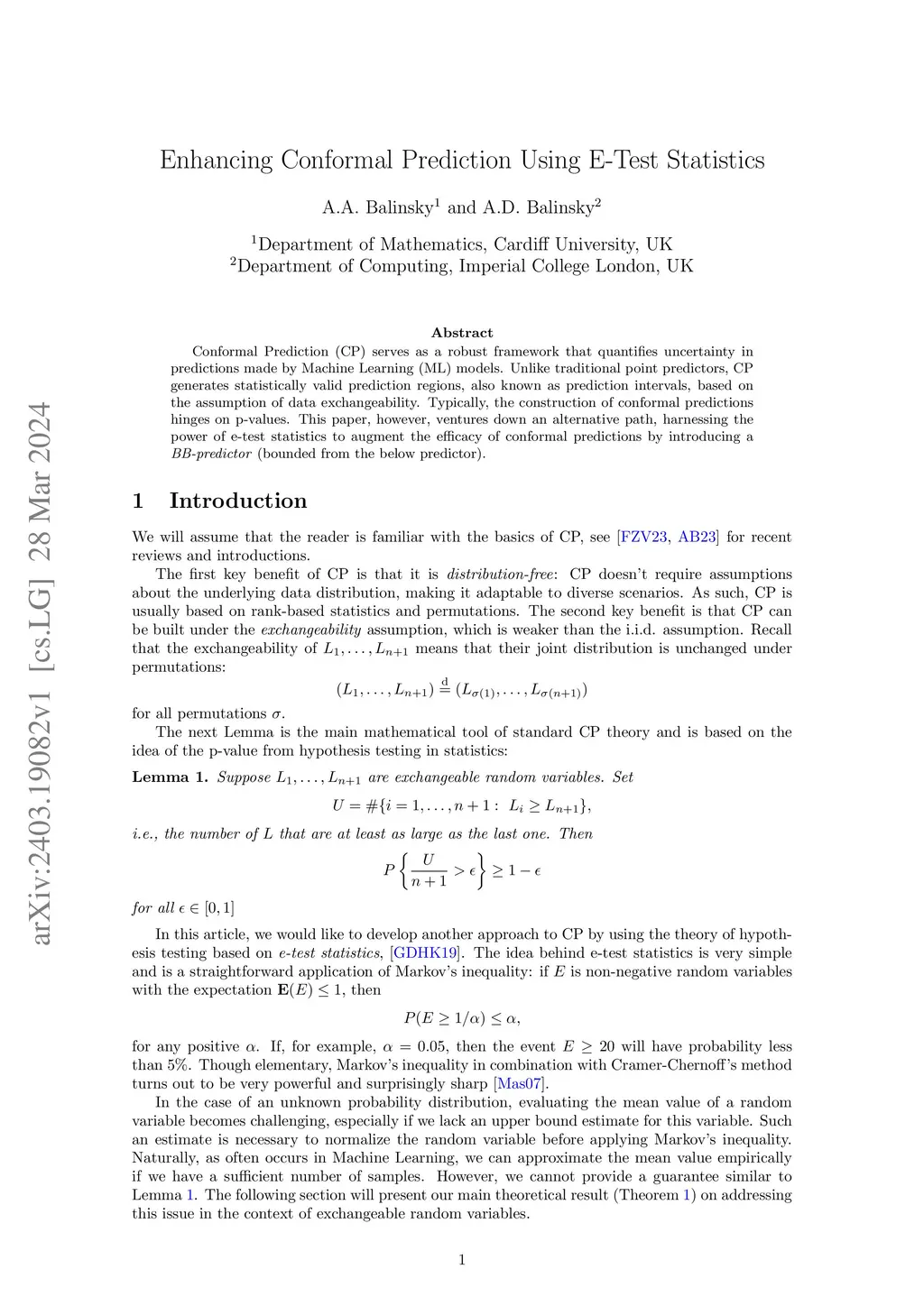 Conformal Prediction (CP) serves as a robust framework that quantifies uncertainty in predictions made by Machine Learning (ML) models. Unlike traditional point predictors, CP generates statistically valid prediction regions, also known as prediction intervals, based on the assumption of data exchangeability. Typically, the construction of conformal predictions hinges on p-values. This paper, however, ventures down an alternative path, harnessing the power of e-test statistics to augment the efficacy of conformal predictions by introducing a BB-predictor (bounded from the below predictor).