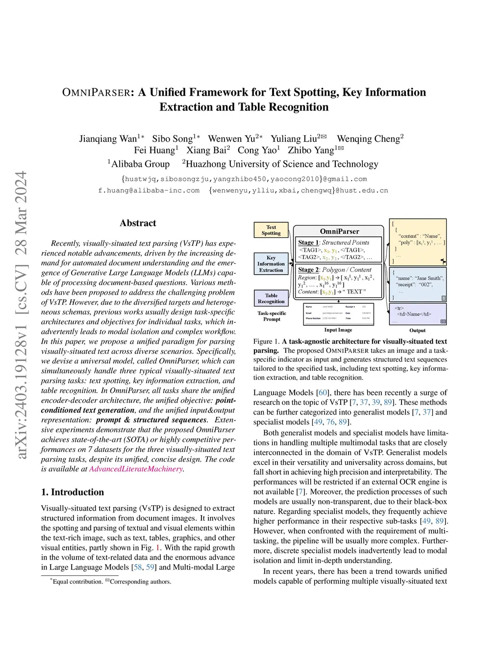 OmniParser: A Unified Framework for Text Spotting, Key Information