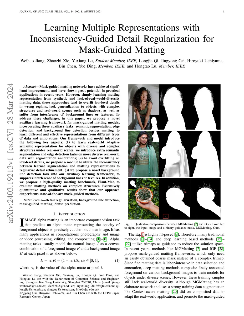 Mask-guided matting networks have achieved significant improvements and have shown great potential in practical applications in recent years. However, simply learning matting representation from synthetic and lack-of-real-world-diversity matting data, these approaches tend to overfit low-level details in wrong regions, lack generalization to objects with complex structures and real-world scenes such as shadows, as well as suffer from interference of background lines or textures. To address these challenges, in this paper, we propose a novel auxiliary learning framework for mask-guided matting models, incorporating three auxiliary tasks: semantic segmentation, edge detection, and background line detection besides matting, to learn different and effective representations from different types of data and annotations. Our framework and model introduce the following key aspects: (1) to learn real-world adaptive semantic representation for objects with diverse and complex structures under real-world scenes, we introduce extra semantic segmentation and edge detection tasks on more diverse real-world data with segmentation annotations; (2) to avoid overfitting on low-level details, we propose a module to utilize the inconsistency between learned segmentation and matting representations to regularize detail refinement; (3) we propose a novel background line detection task into our auxiliary learning framework, to suppress interference of background lines or textures. In addition, we propose a high-quality matting benchmark, Plant-Mat, to evaluate matting methods on complex structures. Extensively quantitative and qualitative results show that our approach outperforms state-of-the-art mask-guided methods.