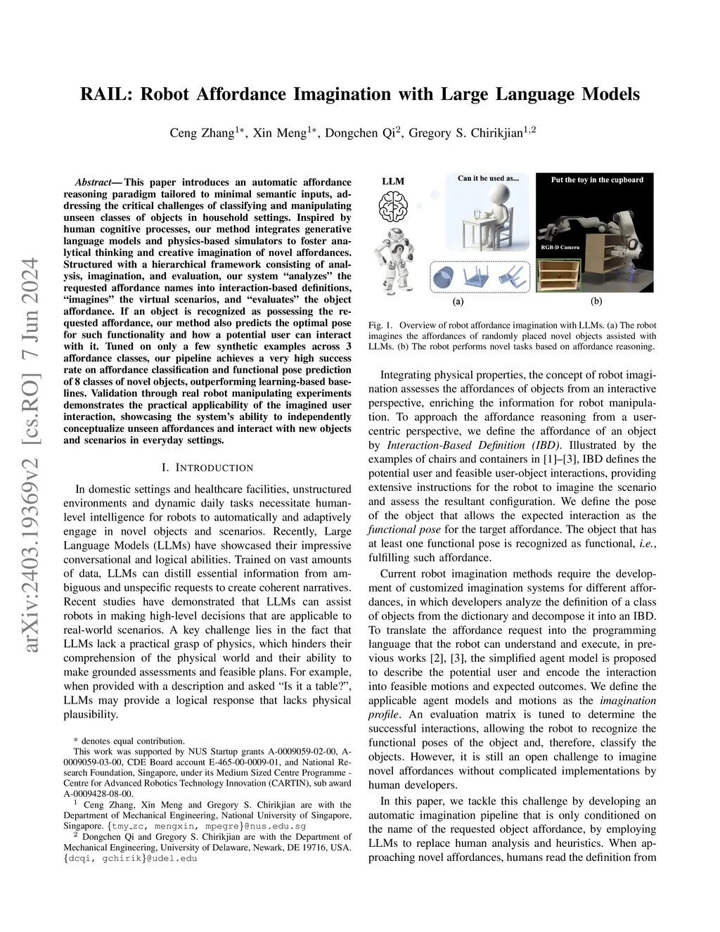 RAIL: Robot Affordance Imagination with Large Language Models