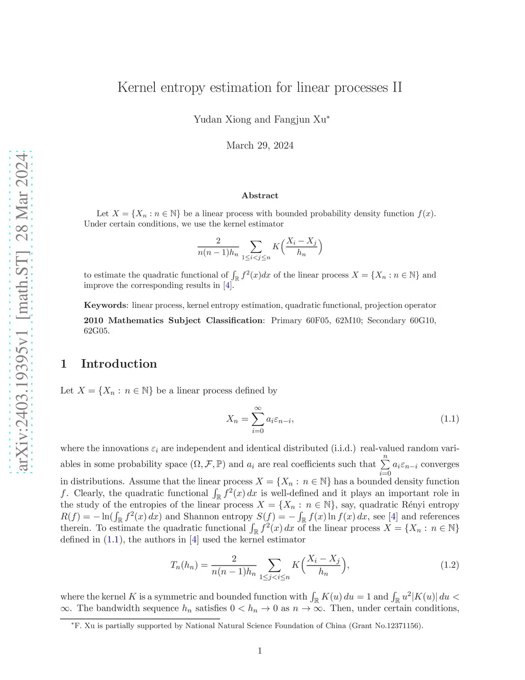 Kernel entropy estimation for linear processes II
