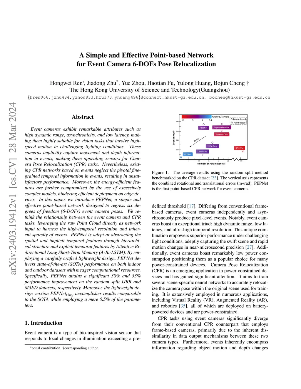 Event cameras exhibit remarkable attributes such as high dynamic range, asynchronicity, and low latency, making them highly suitable for vision tasks that involve high-speed motion in challenging lighting conditions. These cameras implicitly capture movement and depth information in events, making them appealing sensors for Camera Pose Relocalization (CPR) tasks. Nevertheless, existing CPR networks based on events neglect the pivotal fine-grained temporal information in events, resulting in unsatisfactory performance. Moreover, the energy-efficient features are further compromised by the use of excessively complex models, hindering efficient deployment on edge devices. In this paper, we introduce PEPNet, a simple and effective point-based network designed to regress six degrees of freedom (6-DOFs) event camera poses. We rethink the relationship between the event camera and CPR tasks, leveraging the raw Point Cloud directly as network input to harness the high-temporal resolution and inherent sparsity of events. PEPNet is adept at abstracting the spatial and implicit temporal features through hierarchical structure and explicit temporal features by Attentive Bi-directional Long Short-Term Memory (A-Bi-LSTM). By employing a carefully crafted lightweight design, PEPNet delivers state-of-the-art (SOTA) performance on both indoor and outdoor datasets with meager computational resources. Specifically, PEPNet attains a significant 38% and 33% performance improvement on the random split IJRR and M3ED datasets, respectively. Moreover, the lightweight design version PEPNet accomplishes results comparable to the SOTA while employing a mere 0.5% of the parameters.