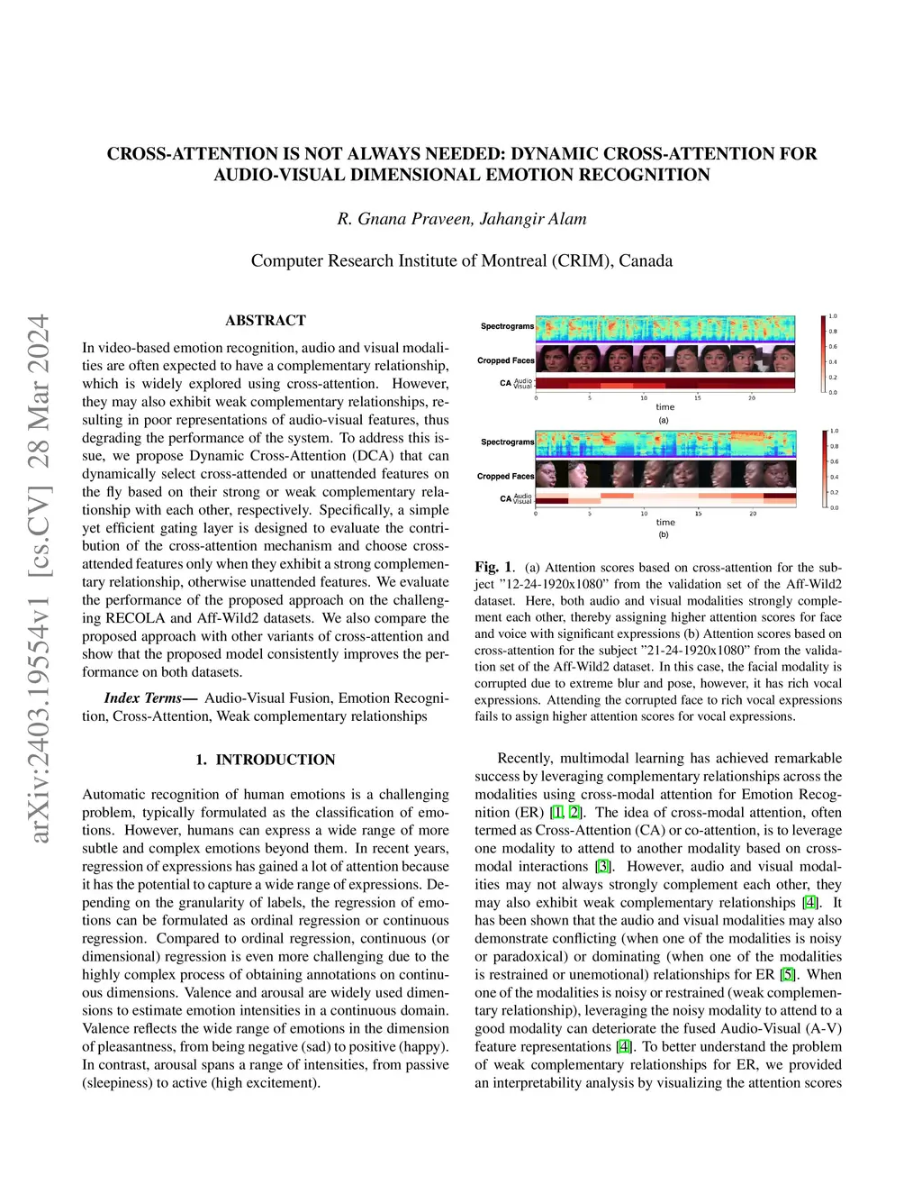 In video-based emotion recognition, audio and visual modalities are often expected to have a complementary relationship, which is widely explored using cross-attention. However, they may also exhibit weak complementary relationships, resulting in poor representations of audio-visual features, thus degrading the performance of the system. To address this issue, we propose Dynamic Cross-Attention (DCA) that can dynamically select cross-attended or unattended features on the fly based on their strong or weak complementary relationship with each other, respectively. Specifically, a simple yet efficient gating layer is designed to evaluate the contribution of the cross-attention mechanism and choose cross-attended features only when they exhibit a strong complementary relationship, otherwise unattended features. We evaluate the performance of the proposed approach on the challenging RECOLA and Aff-Wild2 datasets. We also compare the proposed approach with other variants of cross-attention and show that the proposed model consistently improves the performance on both datasets.