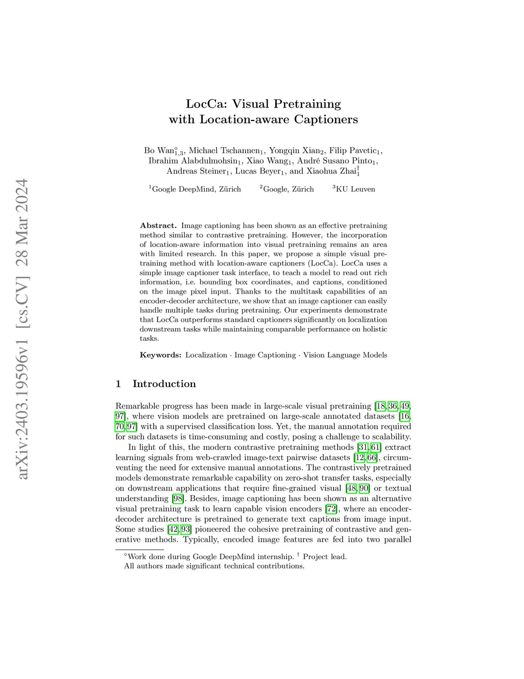 Image captioning has been shown as an effective pretraining method similar to contrastive pretraining. However, the incorporation of location-aware information into visual pretraining remains an area with limited research. In this paper, we propose a simple visual pretraining method with location-aware captioners (LocCa). LocCa uses a simple image captioner task interface, to teach a model to read out rich information, i.e. bounding box coordinates, and captions, conditioned on the image pixel input. Thanks to the multitask capabilities of an encoder-decoder architecture, we show that an image captioner can easily handle multiple tasks during pretraining. Our experiments demonstrate that LocCa outperforms standard captioners significantly on localization downstream tasks while maintaining comparable performance on holistic tasks.