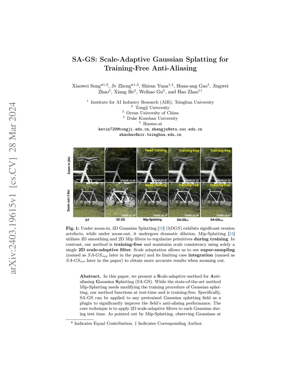 SA-GS: Scale-Adaptive Gaussian Splatting for Training-Free Anti-Aliasing