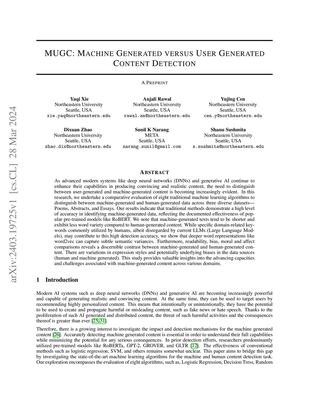 MUGC: Machine Generated versus User Generated Content Detection