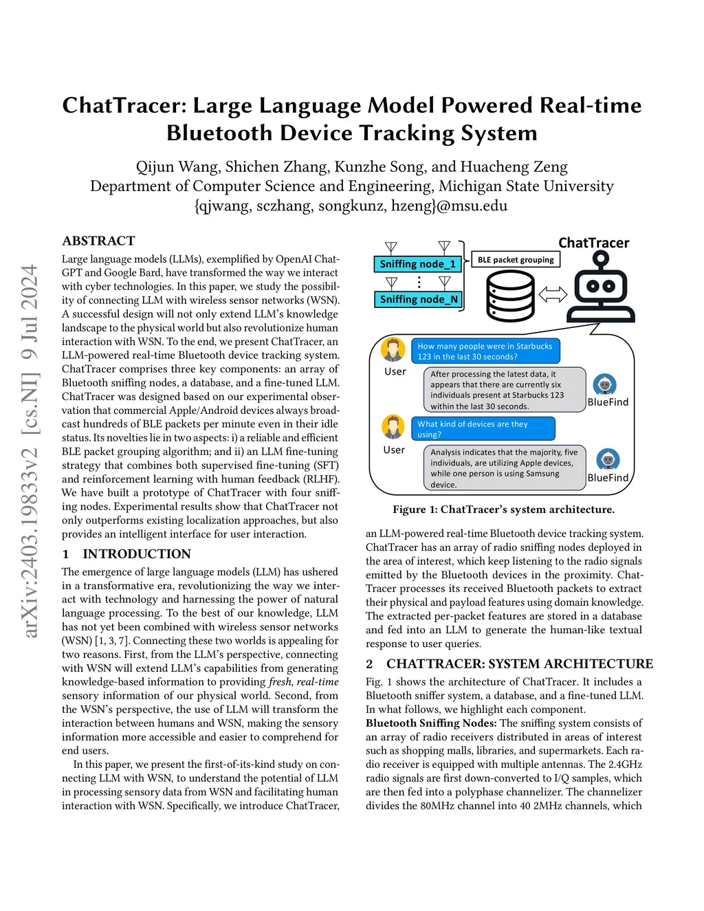ChatTracer: Large Language Model Powered Real-time Bluetooth Device