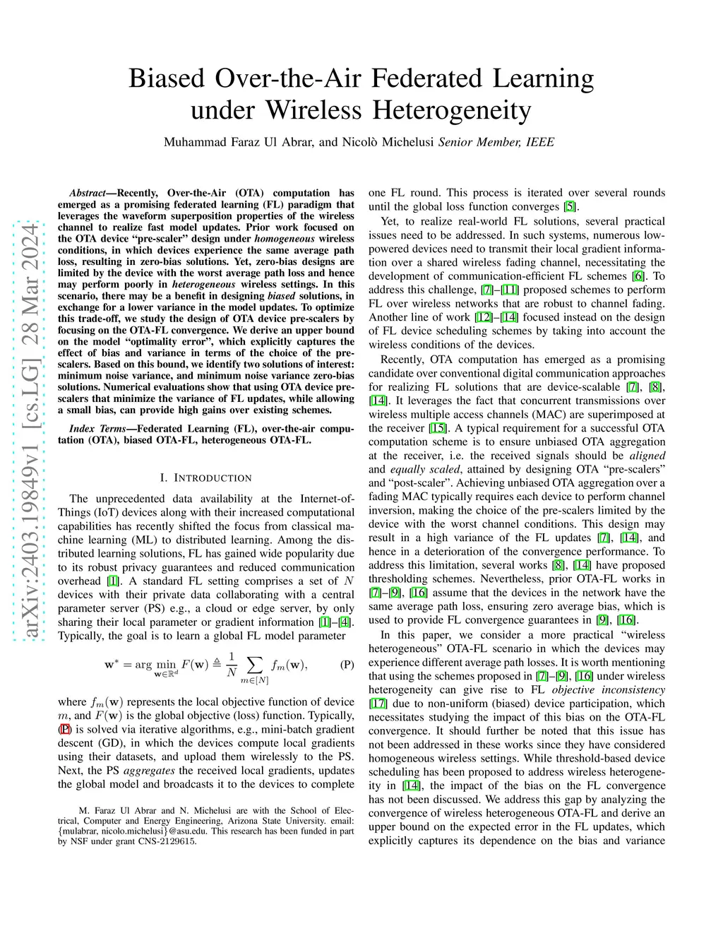 Biased Over-the-Air Federated Learning under Wireless Heterogeneity