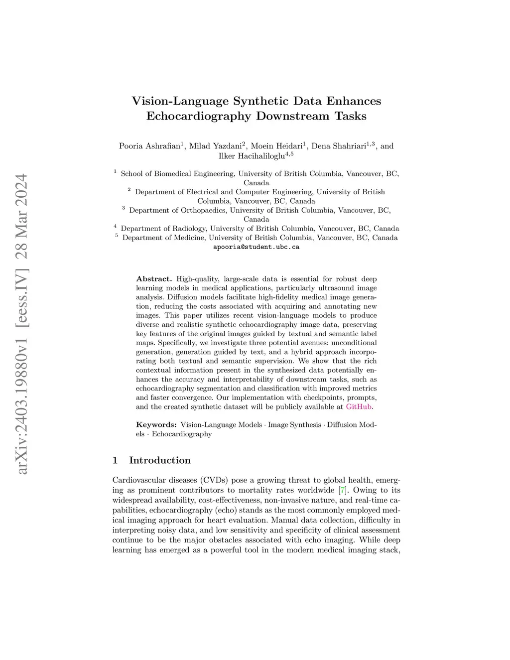 High-quality, large-scale data is essential for robust deep learning models in medical applications, particularly ultrasound image analysis. Diffusion models facilitate high-fidelity medical image generation, reducing the costs associated with acquiring and annotating new images. This paper utilizes recent vision-language models to produce diverse and realistic synthetic echocardiography image data, preserving key features of the original images guided by textual and semantic label maps. Specifically, we investigate three potential avenues: unconditional generation, generation guided by text, and a hybrid approach incorporating both textual and semantic supervision. We show that the rich contextual information present in the synthesized data potentially enhances the accuracy and interpretability of downstream tasks, such as echocardiography segmentation and classification with improved metrics and faster convergence. Our implementation with checkpoints, prompts, and the created synthetic dataset will be publicly available at \href{https://github.com/Pooria90/DiffEcho}{GitHub}.