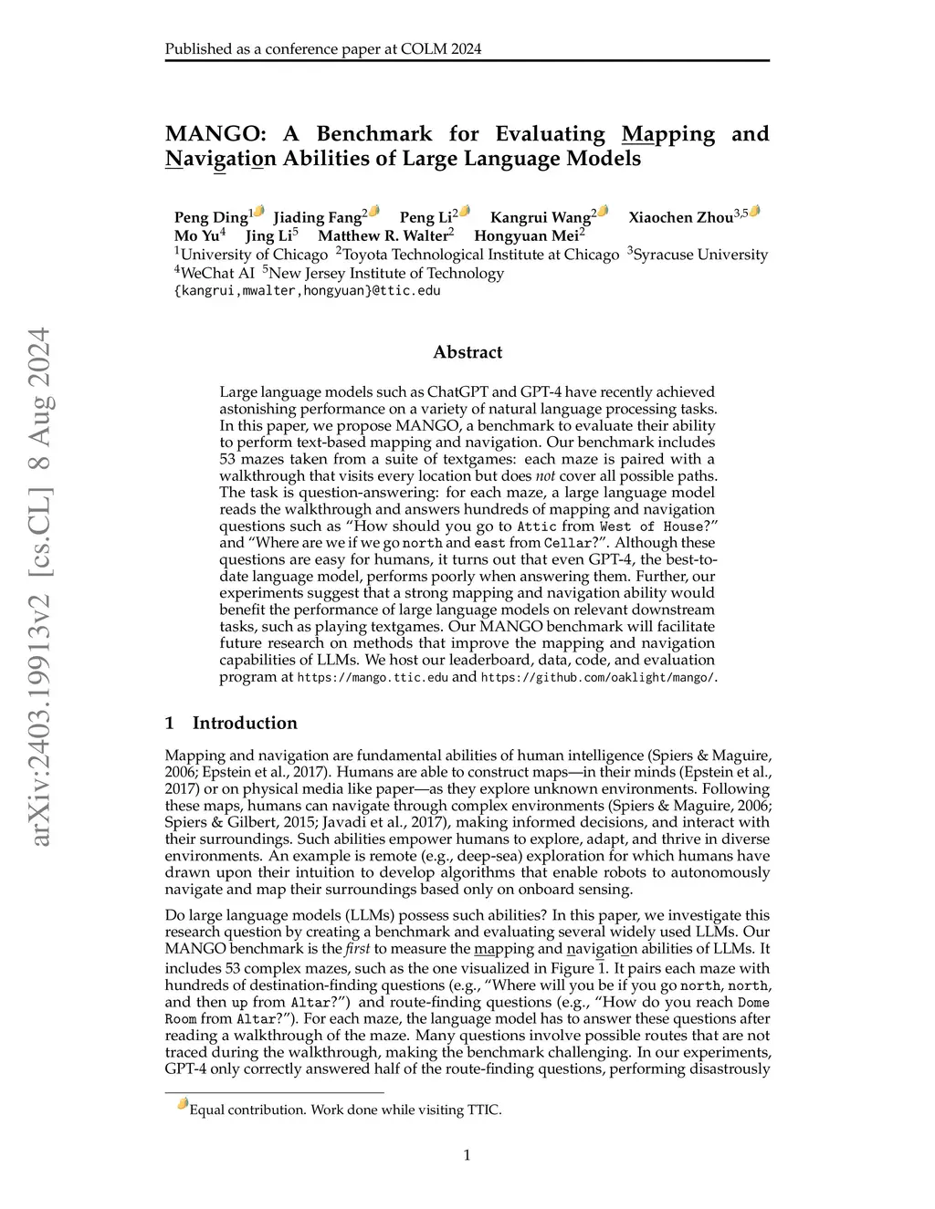 MANGO: A Benchmark for Evaluating Mapping and Navigation Abilities of