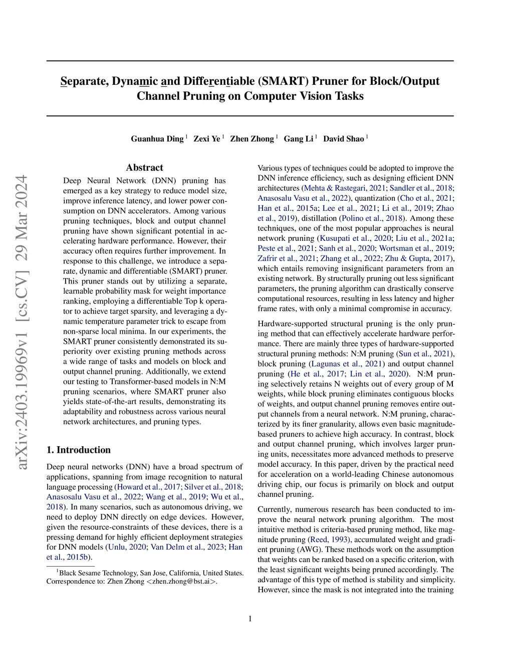 Separate, Dynamic and Differentiable (SMART) Pruner for Block/Output